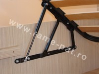 5. Dupa ce ati montat balamalele pe pat, rabatati somiera atat cat permite, pentru a infileta suruburile necesare prinderii pistoanelor de mecanism, un capat pe somiera si celalalt pe balama.