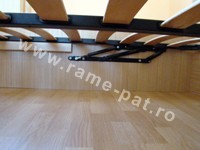 3. Se aseaza somiera metalica cu setul de balamale montat pe ea in interiorul patului, pe șipcile deja montate.